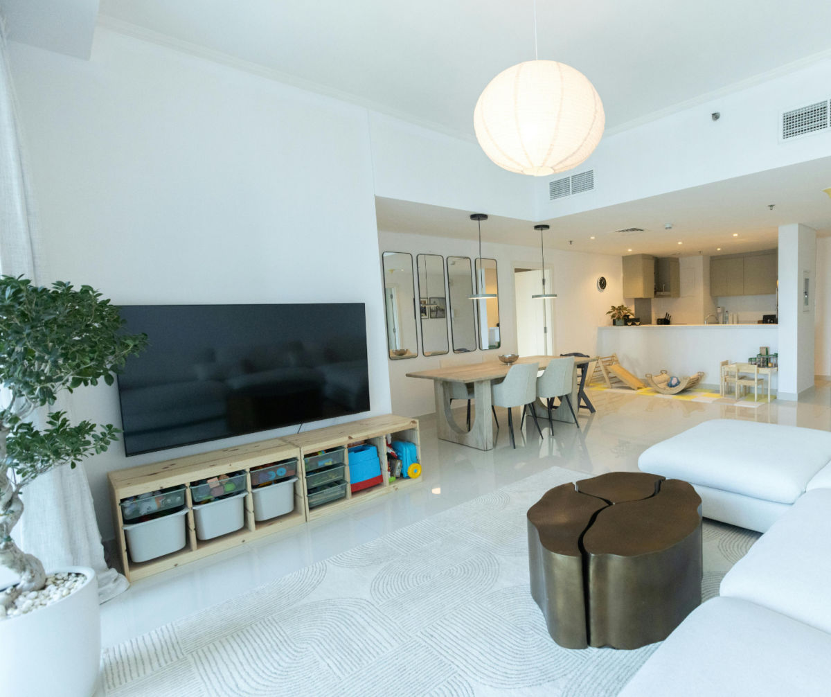 The master suite serves as a serene sanctuary, featuring a plush king-sized bed and a spa-inspired bathroom finished in Macael marble with a rainfall shower. Every detail, from the integrated smart-home climate control to the 24-hour concierge service, is designed to provide an effortless lifestyle.